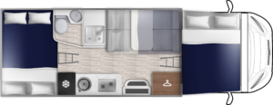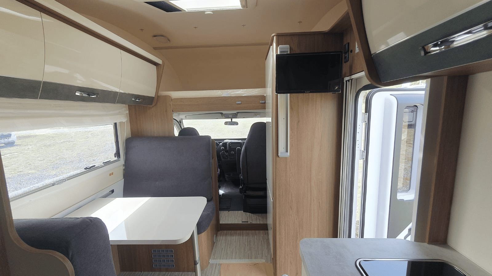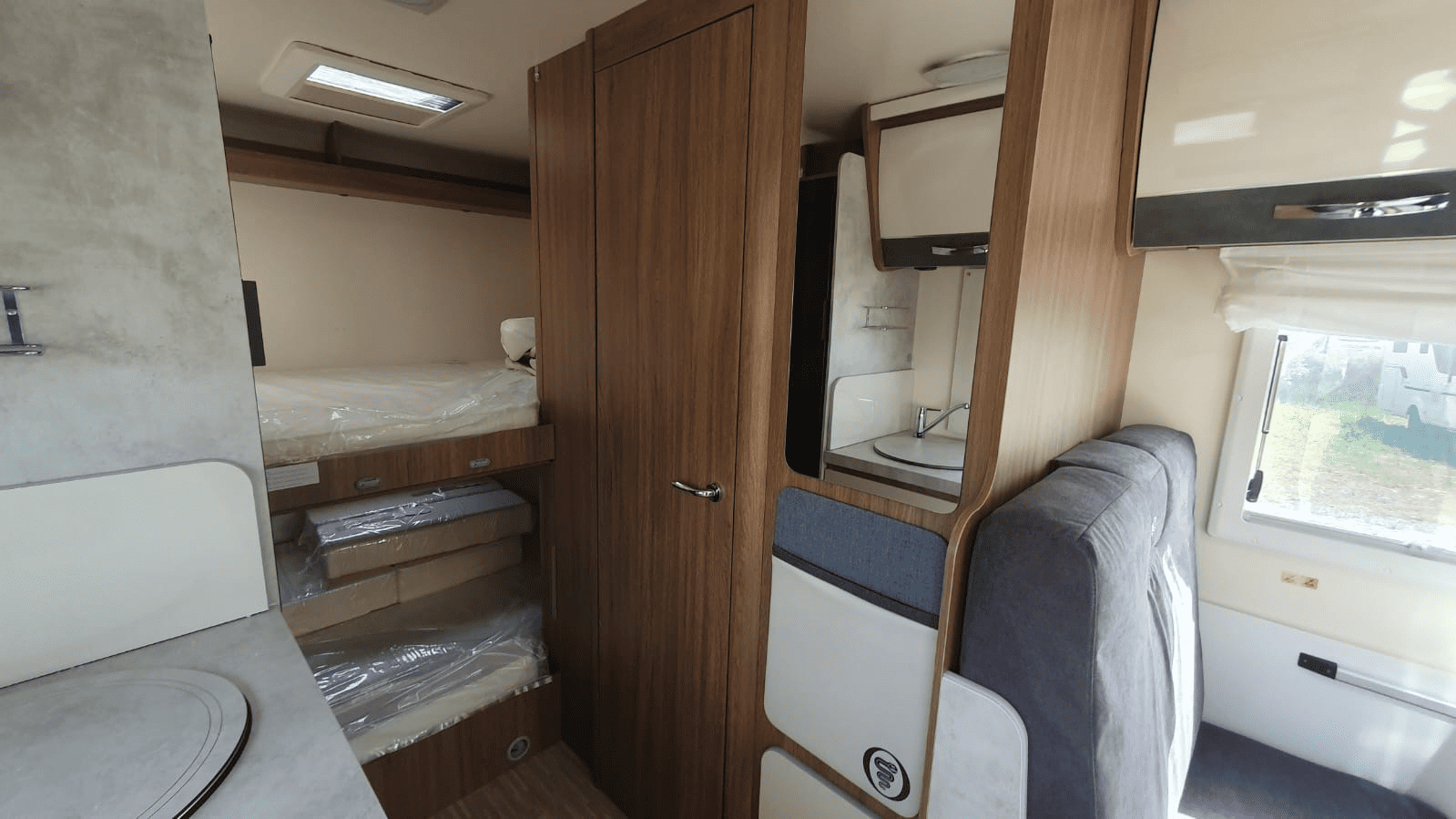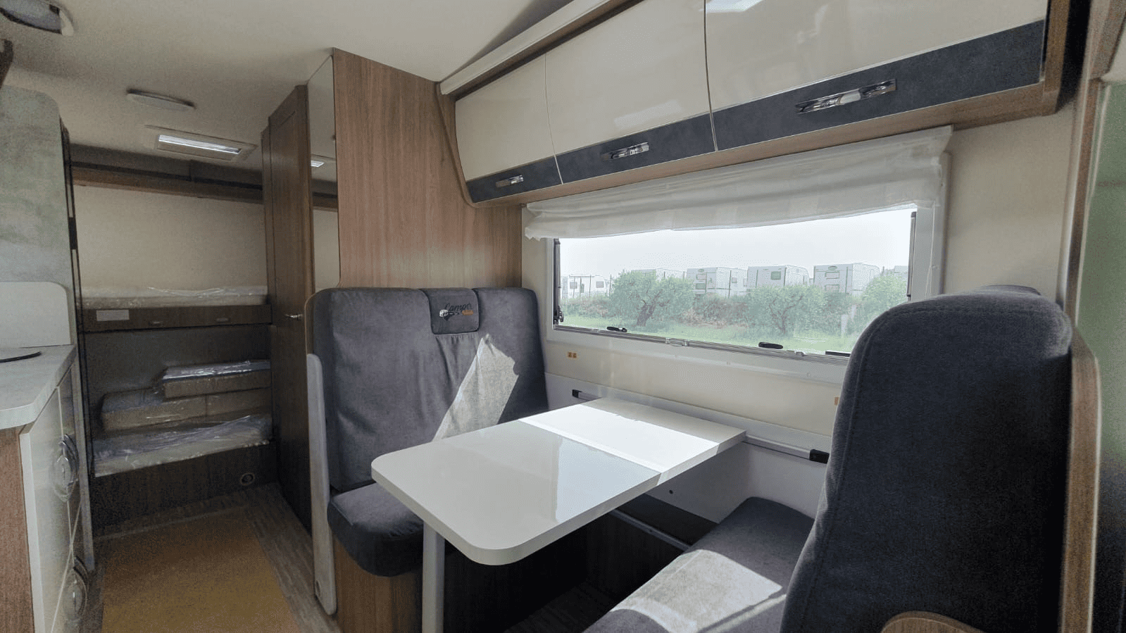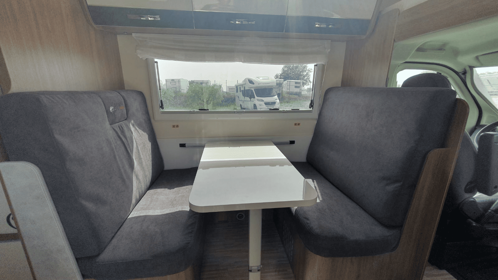 Es una autocaravana capuchina con menos de 7 m de longitud, ideal para familias que buscan un gran espacio para dormir sin renunciar a maniobrabilidad. Su cama capuchina le da un aspecto clásico de “casa rodante” y permite aprovechar bien el interior incluso durante los viajes.